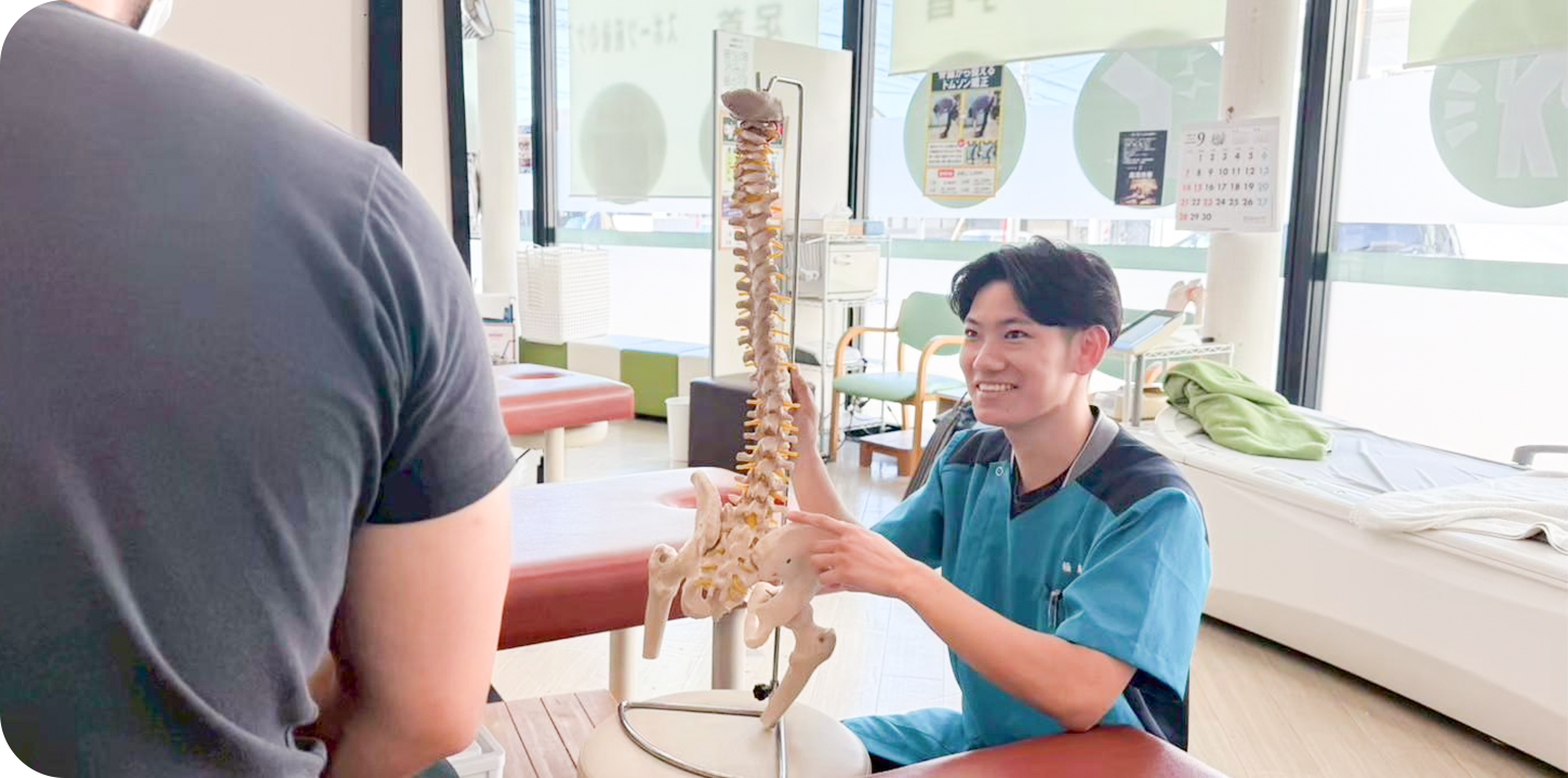 患者様にご満足いただけるよう、問診から施術にいたるまで病態をきちんと把握するためにお一人お一人に合わせた丁寧な説明と施術を心がけています。