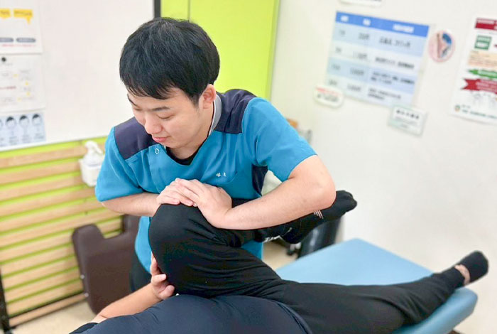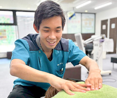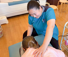 頚部、腰部、膝など手技を中心とした柔整マッサージを基本に、患部周辺から痛みの中枢へと筋腱を緩めていきます。経過を見ながら電気治療、施術法を変えていき、痛みを軽減させていきます。