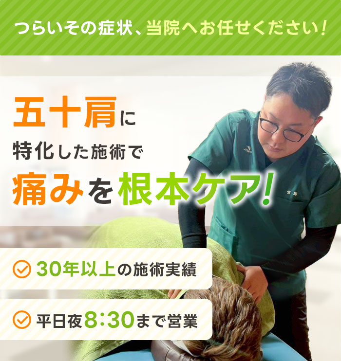 五十肩でお悩みの方は当院にお任せください